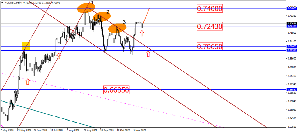 Австралиец, похоже, пытается оттолкнуться от горизонтали 0.7243, оформив даже для этого бычье поглощение. Потенциал роста пары AUD/USD пока ограничено «психологическим» уровнем 0.7400: