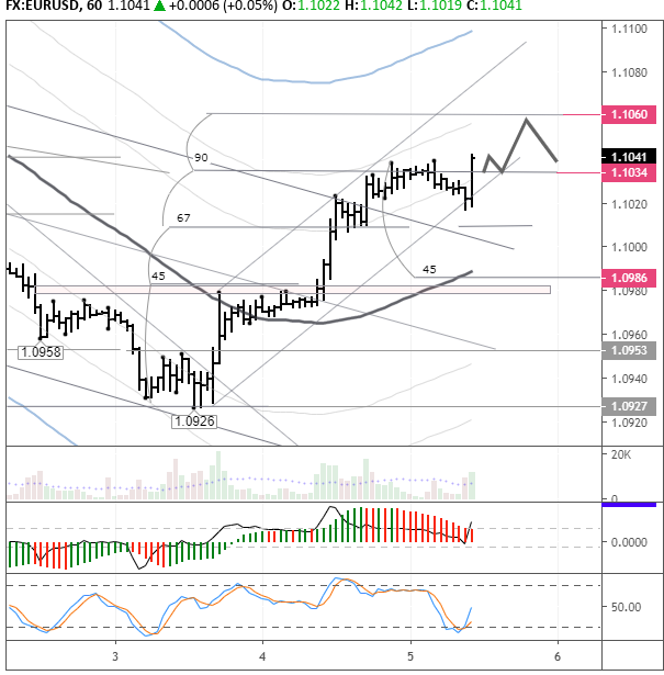 Ожидания с ростом до 67 градуса оправдались. На новостях цена превысила его, достигнув 90 градуса. После коррекции на 1,1017 цена восстановилась до 1,1035. Покупатели готовы двигаться выше к 112 гр. — 1,1060. Технически мы не видим никаких барьеров на пути к разворотной зоне. МА линия U3 проходит через 1,1099. Рост к ней можно рассматривать, если доллар продолжит нисходящую коррекцию ко всем основным валютам.