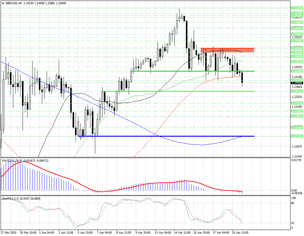 - курс валюты смог закрепиться ниже уровня 1.2438, который теперь выступает в качестве значимого сопротивления для британского фунта (GBP).