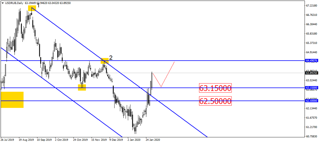 Российский рубль под конец прошлой неделе совершил кульбит и полетел в сторону 65-й фигуры. Пока поддержкой для рубля будет уровень 63.15, при возвращении к которому цена может совершить отскок: