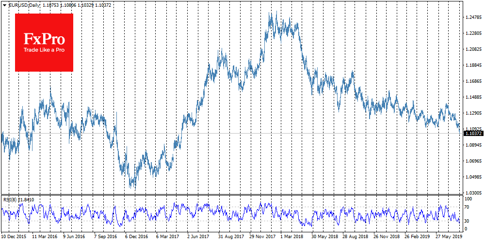 Восходящий тренд по USD был усилен падением под важный уровень 1.1100, где ранее EURUSD находила поддержку. В четверг с утра пара находится в районе 1.1050, опустившись до самых низких уровней с мая 2017. Слом линии поддержки может породить усиление давления на евро, который способен дойти до 1.04, области минимумов 2015-2016 годов. При этом слом круглого уровня на 1.1000 способен ускорить это ослабление.