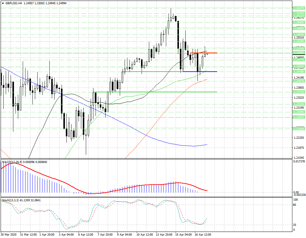 - Курс валютной пары зажат между скользящей средней с периодом 34 (уровень сопротивления 1.25065) с одной стороны и средних с периодами 55, 89 и 144 (ряд уровней поддержки 1.2444, 1.24135 и 1.21985) с другой.