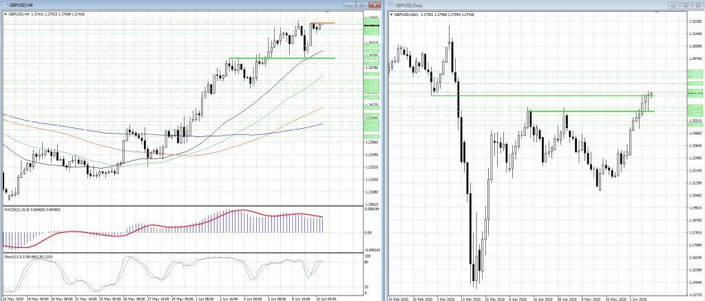 В противном случае, медведи могут перехватить инициативу, а их целями станут уровни 1.27055, 1.26605 и 1.2613.
