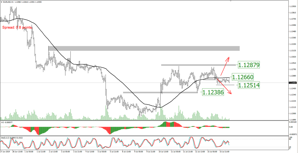 В понедельник, 15 июля, по итогам дня евро по отношению к доллару ослаб, закрывшись незначительно ниже цены открытия азиатской сессии. Во время торгов азиаты двигали валютную пару в диапазоне 1,1263-1,1274. С приходом на рынок европейцев пиковое значение EURUSD достигало 1,1283, но перед американской сессией евро ослаб. Масло в огонь добавили ожидания выступления члена FOMC Джона Вильямса. Американцы отреагировали дальнейшим укреплением доллара против евро, и к концу дня минимальное значение EURUSD достигало 1,1253. Была прибита линия поддержки на уровне 1,1262, но в течение дня рынок не смог обновить минимум минувшей пятницы 1,1238, но такой шанс по-прежнему сохраняется.