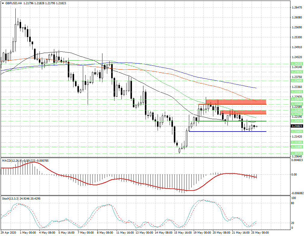 - Курс валюты закрепился ниже скользящих средних с периодами 34, 55, 89 и 144, которые теперь являются рядом уровней сопротивления 1.2200, 1.22145, 1.2280 и 1.2331.
