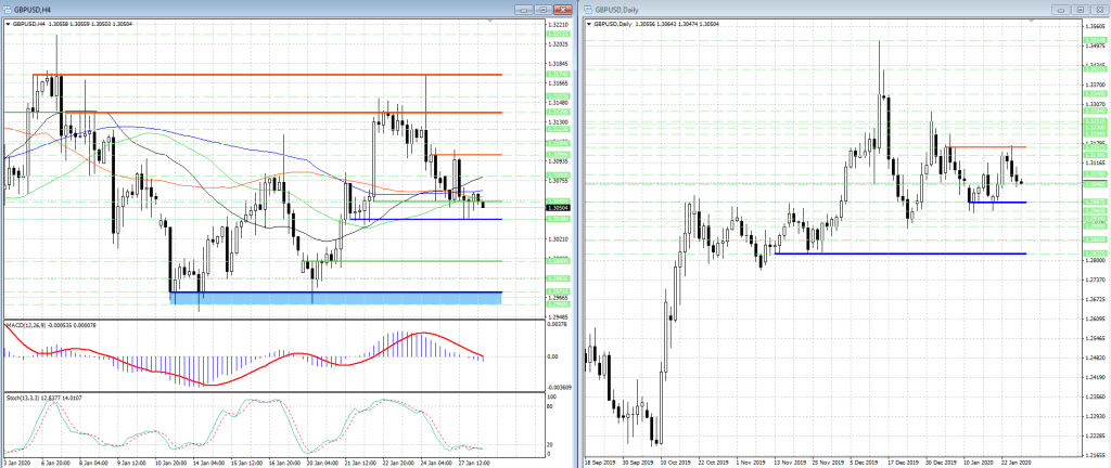 - Курс валюты ‘неуверенно’ закрепился ниже скользящих средних с периодами 89, 55, 144 и 34, которые теперь являются рядом уровней сопротивления 1.30575, 1.3061, 1.3066 и 1.3079.