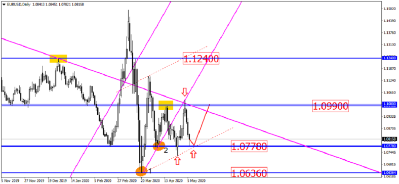 По паре EUR/USD цена красиво полетела от уровня 1.1000 вниз, остановившись на поддержке 1.0778. Стоит отметить, что горизонталь 1.0778 уже не единожды оказывала поддержку цене, поэтому стоит ожидать повторного отскока котировок вверх. Ориентировочный уровень роста – 1.1000, где также (по рыночным слухам) находится уровень цен, выгодный крупным игрокам:
