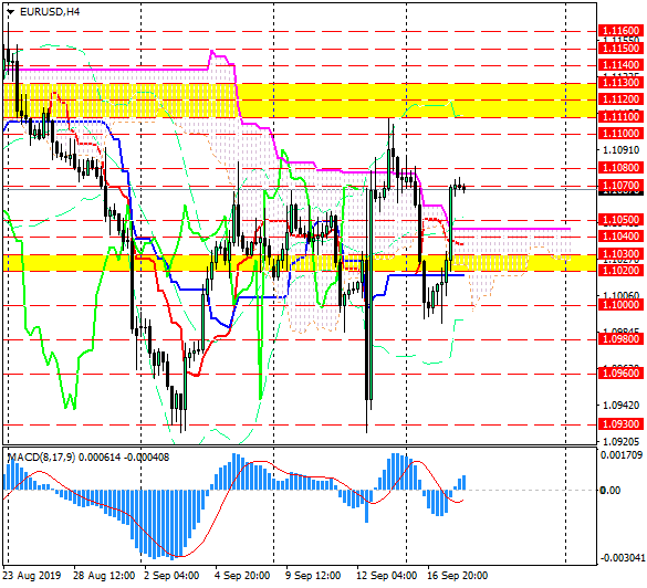 - EUR/USD продолжает колебаться около облака Ишимоку, пока не в силах выбрать дальнейшее направление движения. В то же время, пробой облака вверх позитивен для дальнейшего движения к зоне сопротивления 1.1110-1.1130.