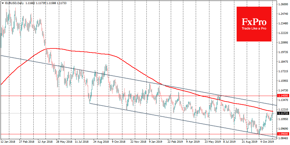 Пара EURUSD торгуется вблизи 1.117, у максимумов с августа, в одном шаге от теста важного уровня 1.12000. Преодоление этой отметки, как и в случае с индексом доллара, расценивается как предпосылка дальнейшего роста вплоть до конца года. В этом случае пара способна уйти в область 1.1400 или даже направиться к 1.1500 при более бычьем сценарии.