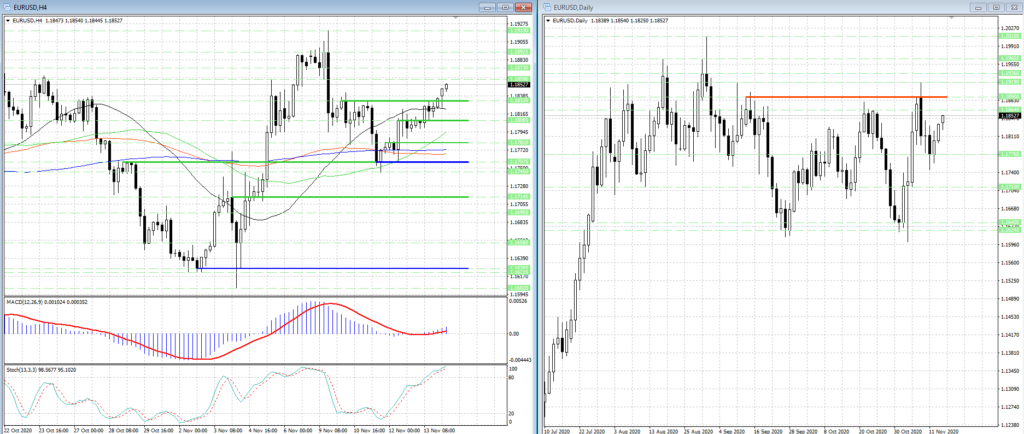 Поэтому, мы ожидаем, что рост котировок может продолжиться, а потенциальные цели быков расположены на 1.18925, 1.1919 и 1.19655.