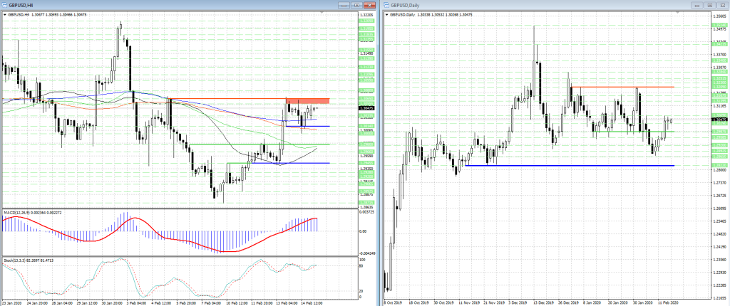 Из-за отсутствия четких сигналов, а также того, что рост котировок замедлился, в качестве подтверждения того, что на рынке форекс в данной валютной паре могут усилиться бычьи настроения, необходимо дождаться пробоя области сопротивления 1.30555 — 1.3065, которая может открыть путь к уровням 1.3099, 1.3123 и 1.3155.