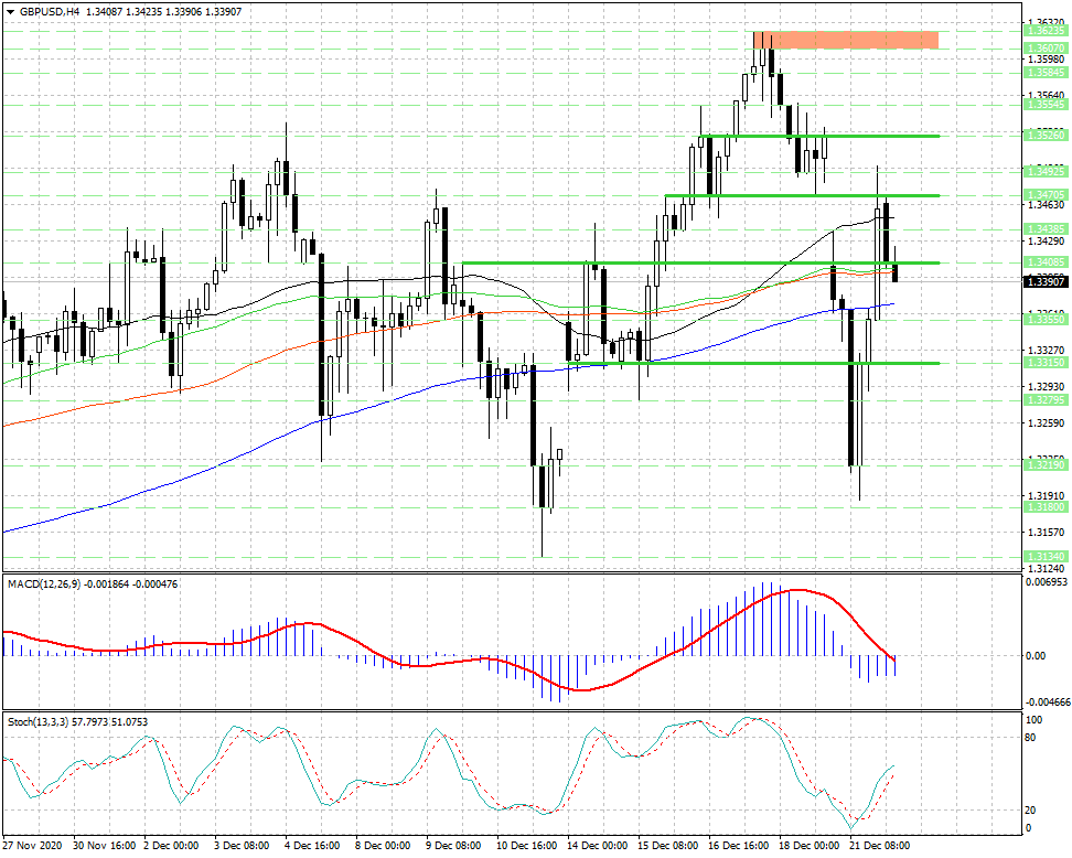 Отмена ‘медвежьего сценария’ произойдет в случае пробоя зеркального уровня 1.34085, который может открыть путь к уровням 1.34705, 1.3526 и 1.35845.