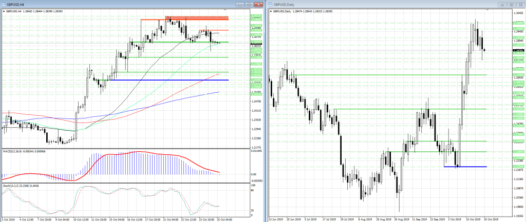 - курс валюты ‘неуверенно’ закрепился ниже зеркального уровня 1.2846, который теперь выступает в качестве сильного уровня сопротивления.
