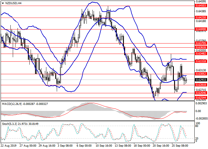 На четырёхчасовом графике формируется боковой тренд. Инструмент скорректировался к средней линии полос Боллинджера. Гистограмма MACD находится в районе нулевой отметки, сохраняя минимальные объёмы, сигнальная линия индикатора движется горизонтально вдоль нулевой отметки, не формируя определённого сигнала к входу в рынок. Стохастик находится в нейтральной зоне, готовясь пересечь границу зоны перепроданности сверху вниз.