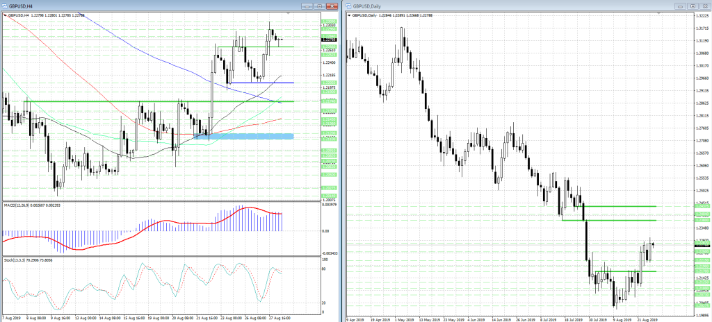 - большую часть европейской сессии вторника в данной валютной паре доминировали бычьи настроения, в результате чего были отработаны наши альтернативные цели (1.2266 и 1.2284);
