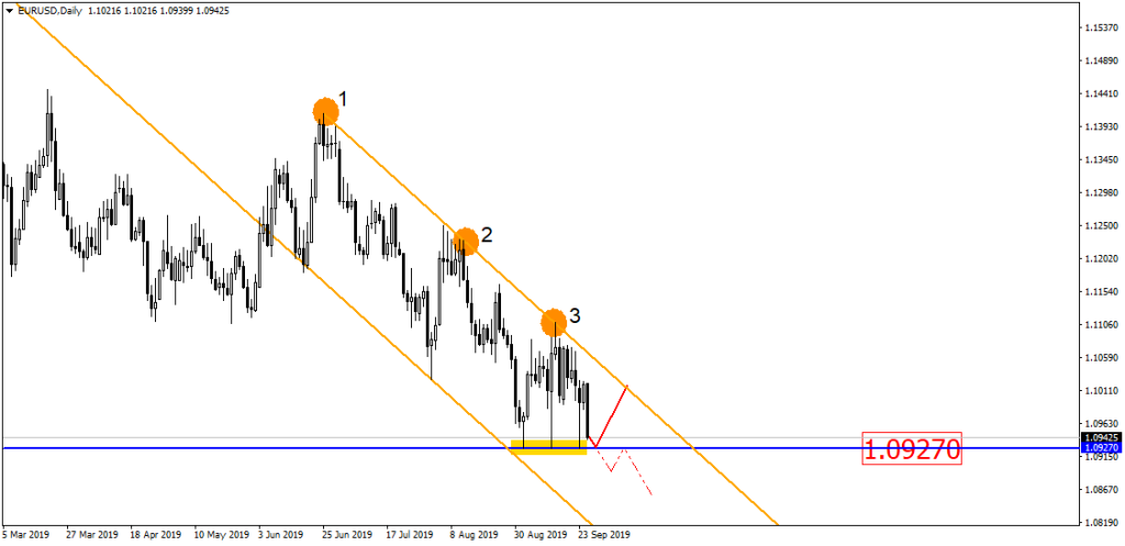 По паре EUR/USD котировки в четвертый раз подходят к уровню 1.0924, от которого в прошлые дни миниатюрно отскакивали, оставляя за собой лишь длинные хвосты. Пока вариант на отскок от уровня, хотя картинка всё же предполагает и красивое пробитие, которое к тому же может быть интенсивное. Стоит отметить, что цена также оттолкнулась от линии нисходящего канала, которая и придала ускорение цене:
