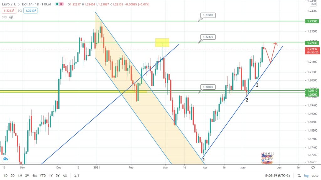 По европейской валюте цена «упёрлась» в уровень сопротивления 1.2243, от которого пытается отскочить. Пока-что базовый сценарий – откат к дневному аптренду и возобновление восходящего движения: