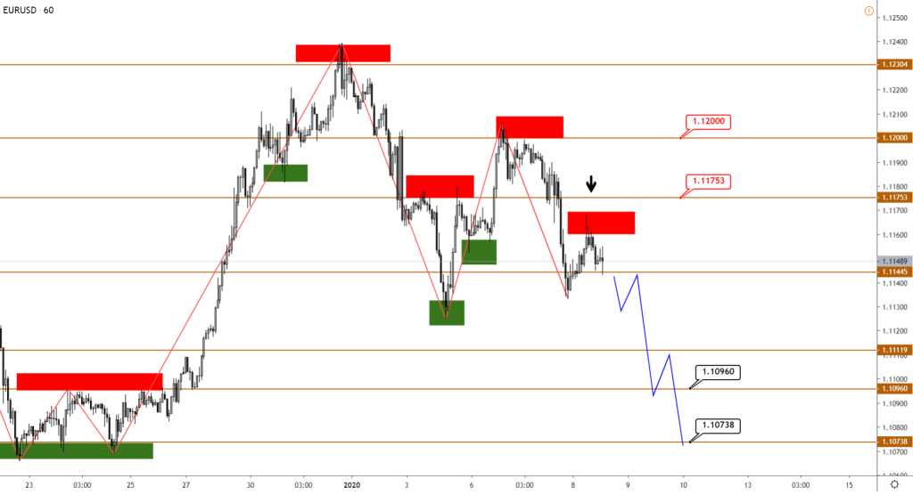 EURUSD ожидаемо снизился вчера, оттолкнувшись от сопротивления на 1,1200, и дошел до уровня 1,1144, где расположена поддержка. От этого уровня пара начала корректироваться вверх, которая может продлиться до уровня 1,1175, где расположен уровень сопротивления. Дальнейший рост выше разворотного уровня 1,1200 даст сигнал к восходящему тренду. Сейчас же основной прогноз на снижение сохраняет свою силу, и в случае отбоя от уровней сопротивления, цена направится к важным уровням поддержки в районе 1,1096 и 1,1073.