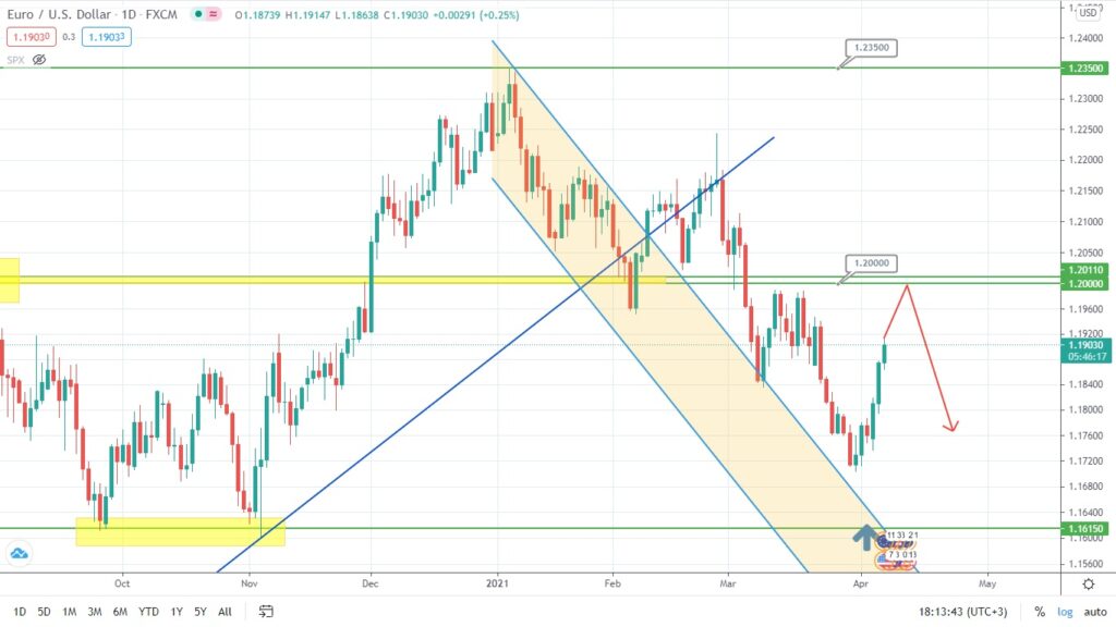 Европейская валюта продолжает свой рост в направлении пробитого «психологического» уровня 1.2000, от которого отскок вниз наиболее вероятен: