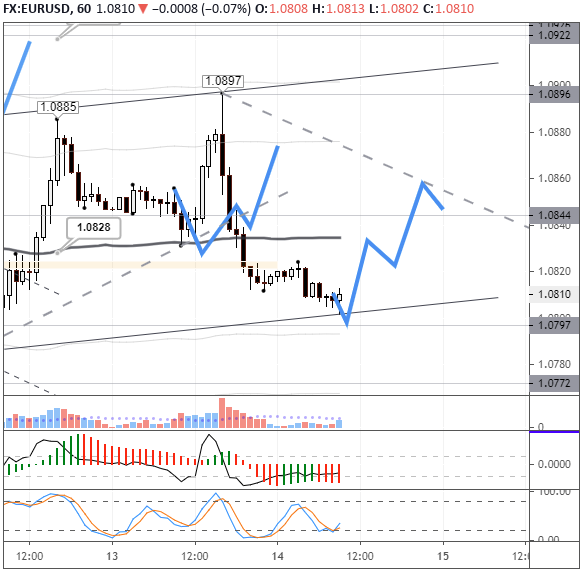 Мы ранее говорили, что будет формироваться сложная коррекционная модель. Сейчас цена находится на нижней линии канала. От 1,0897 трехволновая формация есть, поэтому рискнем рассмотреть отскок до 1,0857. Поддержка находится на 1,0785. Новостей запланировано немного.
