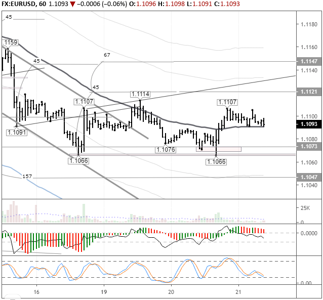 На торгах в Азии почти все основные валюты ушли в минус по отношению к доллару США. Евро стоит 1,1093. Из-за протоколов прогноз на сегодня не делаю. Можно только выделить диапазон 1,1073-1,1116, в котором ожидается консолидация до 21:00. Балансовая линия выступает поддержкой. Поскольку осциллятор стохастик находится в зоне покупок, то примерно через 1-2 часа вероятен рост пары.