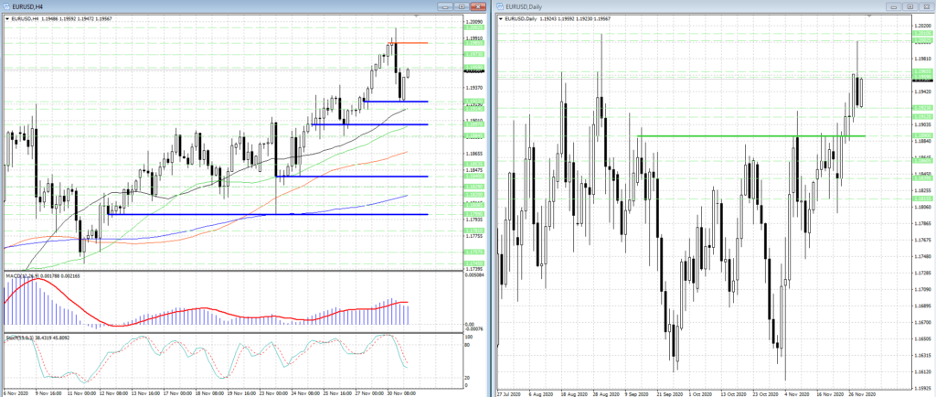 - на уровне 1.1922 присутствует сильная поддержка EURUSD,