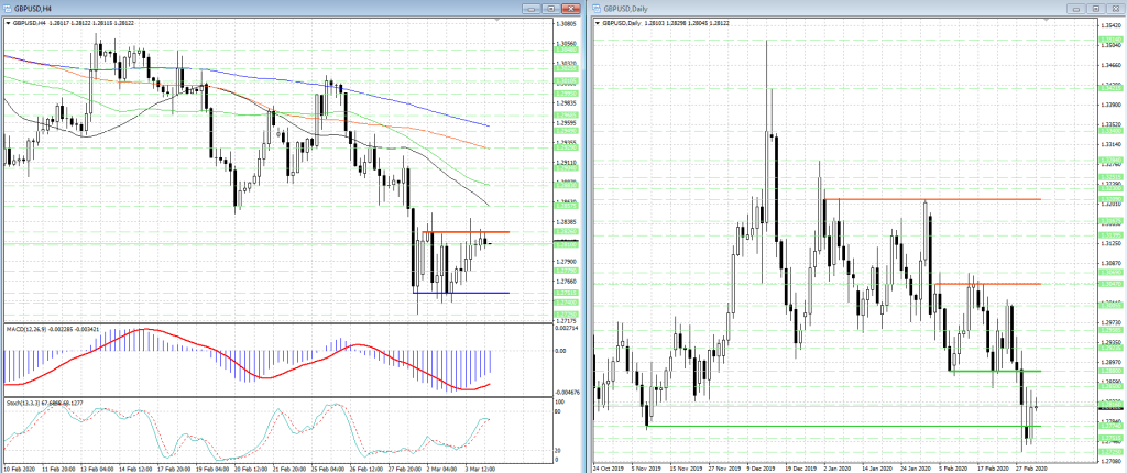 Поскольку, доверять лишь одному четкому сигналу крайне рискованно, а также из-за того, что рост котировок замедлился, то в качестве подтверждения того, что на рынке форекс в данной валютной паре могут усилиться бычьи настроения, необходимо дождаться пробоя сильного уровня сопротивления 1.2826, который может открыть путь к уровням 1.28575, 1.2883 и 1.2904.