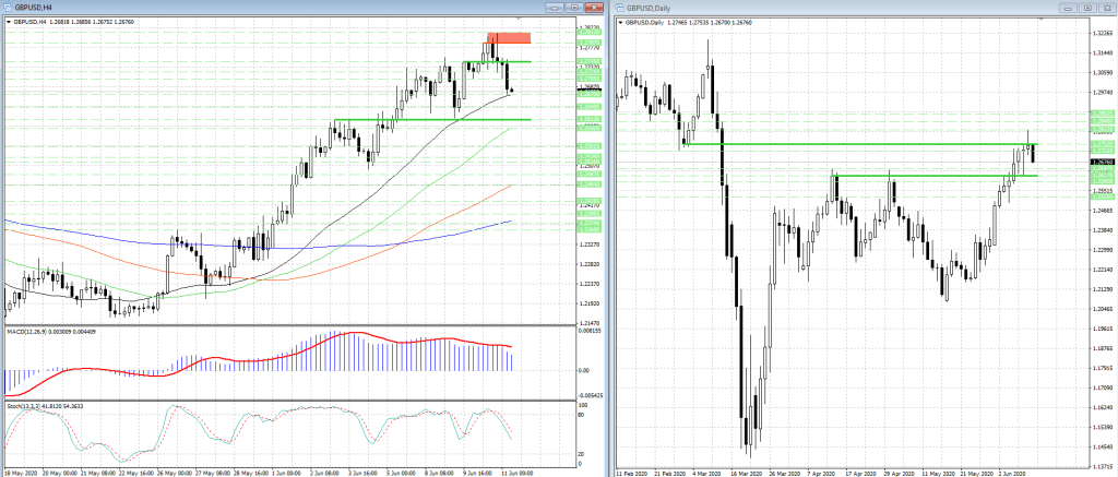 Поэтому, мы ожидаем, что снижение котировок может продолжиться, а потенциальные цели медведей расположены на 1.2613, 1.25515 и 1.2516.