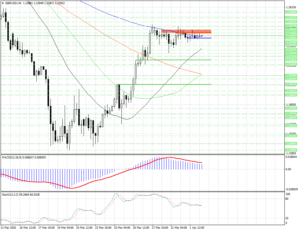 - Курс валютной пары закрепился выше скользящих средних с периодами 144, 34, 89 и 55, которые теперь являются рядом уровней поддержки 1.2381, 1.2283 и 1.2063/62.