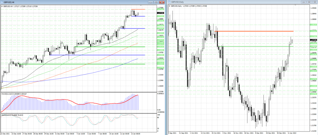 Из-за отсутствия четких сигналов, в качестве подтверждения того, что на рынке форекс в валютной паре GBP/USD могут усилиться бычьи настроения, необходимо дождаться пробоя уровня сопротивления 1.3748, который может открыть путь к уровням 1.3781 и 1.38225.