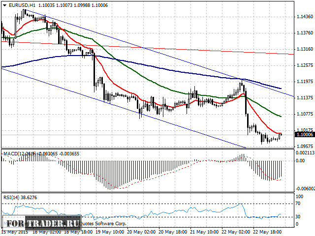 На данный момент цена уперлась в ЕМА 14 (красного цвета), которая выступает уровнем сопротивления. С большей степенью вероятности можно предположить, что цена его не преодолеет и снижение от уровня 1,10 будет возобновлено.