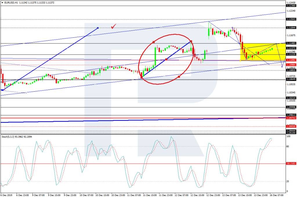 На 1-часовом графике пара EURUSD торгуется в структуре волны снижения. Сегодня рассмотрим возможность теста снизу уровня 1.1148. Затем — снижение до 1.1100. На этом ожидаем завершение коррекции. С пробоем канала этой коррекции будем рассматривать начало очередной волны роста. Технически такой сценарий подтверждает и осциллятор Stochastic. Его сигнальная линия торгуется выше отметки 80. Это означает, что скоро осциллятор развернётся на снижение к отметке 50, а ценовой график отправится на завершение коррекции.