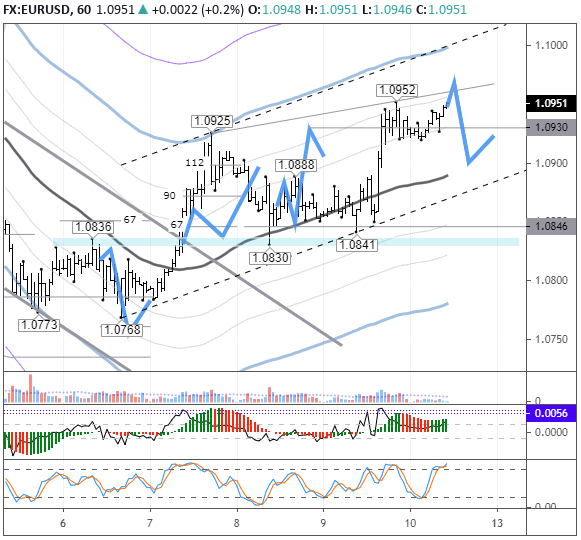 Учитывая низкую ликвидность на валютном рынке по прогнозу, мы рискнем рассмотреть падение курса евро до балансовой линии на 1,0896. Оптимистический вариант – рост до 1,1010. Скачок возможен в 15:30 после выхода отчета по инфляции в США.
