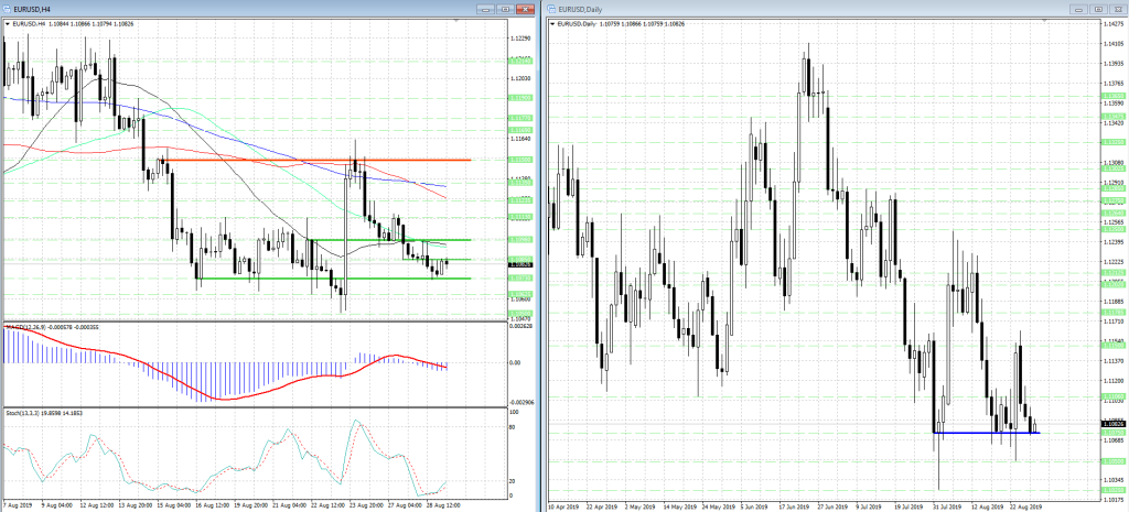 Обратив внимание на 4-х часовой график можно заметить, что на рынке форекс в данной валютной паре найдено краткосрочное ‘равновесие’: