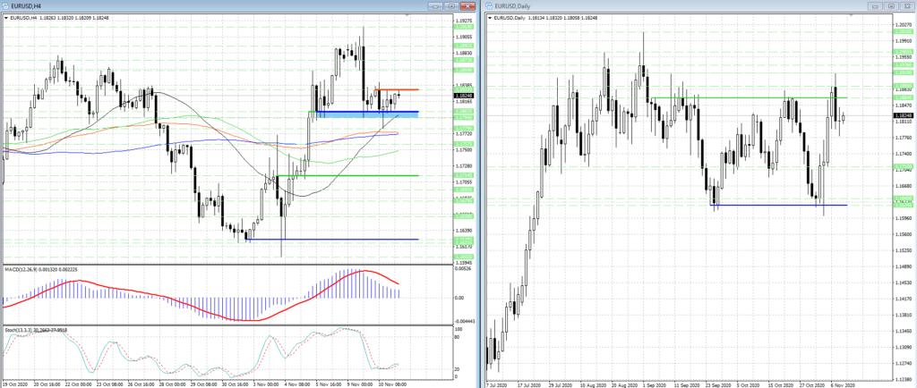 - с одной стороны на уровне 1.1833 присутствует сильное сопротивление для EURUSD,