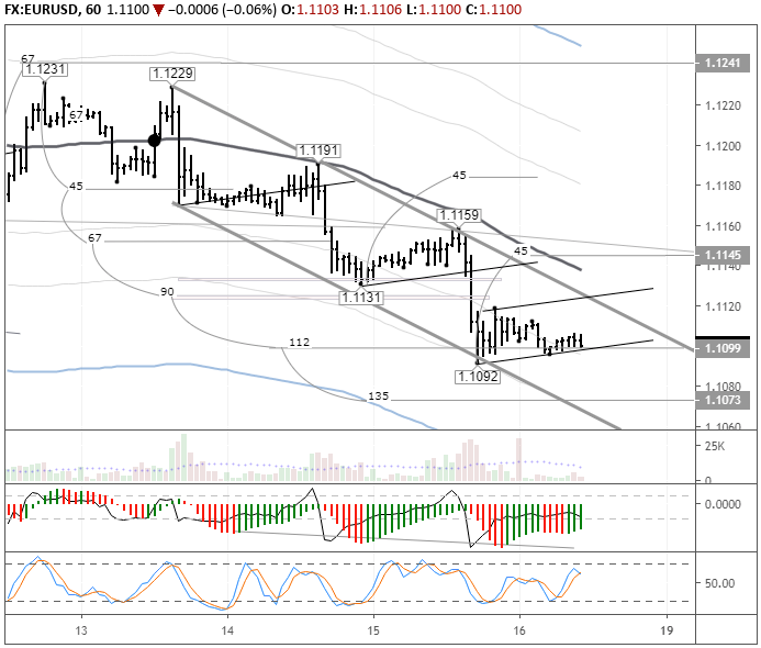 Другой сценарий, это флэт в диапазоне 1,1092-1,1125 с последующим пробоем трендовой линии. И в случае, если он будет неудачный, то полет на 1,1070 обеспечен.