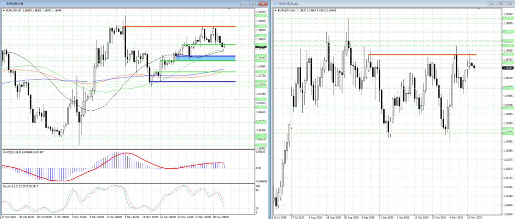 - зеркальный уровень 1.18475 теперь выступает в качестве значимого сопротивления для EURUSD.