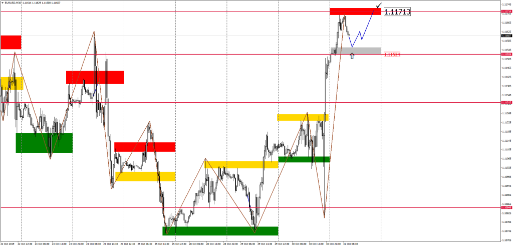 Пара EURUSD вчера сформировала сильный растущий импульс и остановилась около уровня сопротивления в районе 1,1170. На данный момент цена корректируется. Уровень поддержки ожидается на отметке 1,1152 (серая зона), откуда может пройти отбой и рост до уровня сопротивления, отмеченного красной зоной в районе 1,1171.