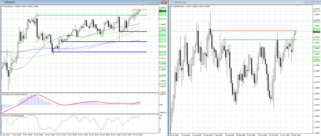 - в тоже время, быкам пока не хватает сил для пробоя уровня 1.1929, где образовалось заметное сопротивление для EURUSD.