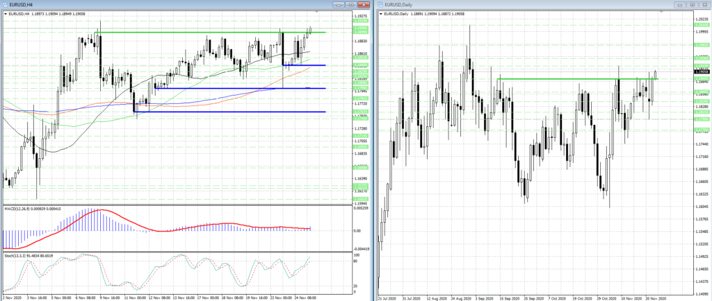 Уровни сопротивления: 1.1919, 1.1936, 1.19655, 1.20105