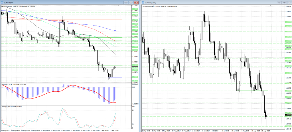 В противном случае, курс валюты будет двигаться в рамках ценового диапазона 1.0939 — 1.09825.