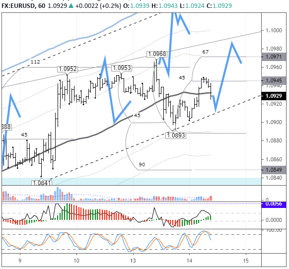 Мы поторопились с внутридневным ралли до 1,1030. Пока Европа отдыхала, продавцы отогнали покупателей к 1,0893. С ростом фондовых индексов курс евро восстановился до 1,0949. Сейчас цена находится на балансовой линии.