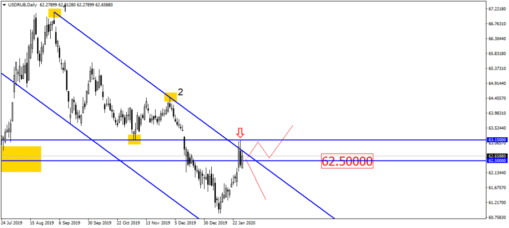 Пара USD/RUB остановилась на уровне 62.50, при этом посылая двоякие сигналы, как на рост, так и на снижение. В принципе, у нас вчера сформировалась фигура, похожая на поглощение, но белая свеча пока препятствует развитию нисходящего сценария. В принципе, все предпосылки для падения пары есть – теперь ждем закрытия дня:
