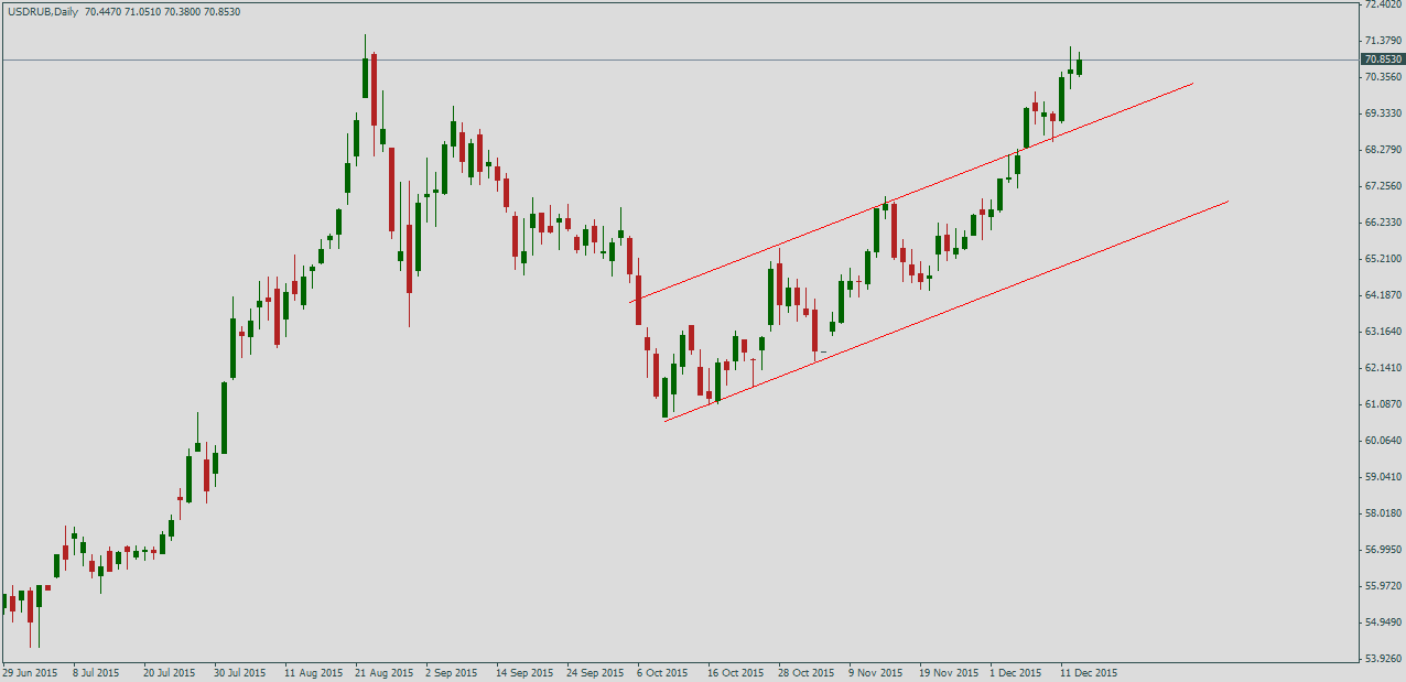 Сегодня, 15 декабря, валютная пара доллар/рубль продолжает рост, тестируя отметку 71 руб/доллар.