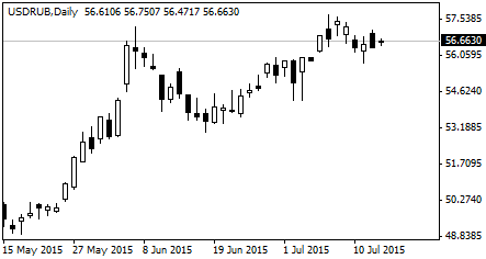 Официальный курс доллара США к рублю на 16 июля 2015 года, установленный Банком России, составляет 56,6642 руб/долл, что на 31,32 копейки меньше предыдущего.