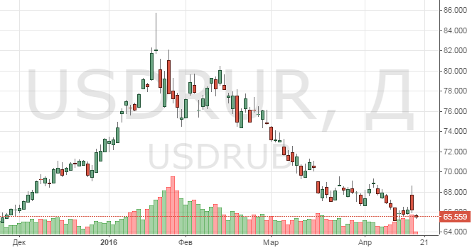 В понедельник, 18 апреля, курс доллара США к рублю продемонстрировал существенное падение, закрыв образовавшийся на открытии гэп и закончив день на отметке 66,0755 руб/доллар.
