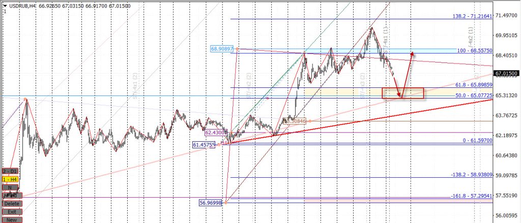 Если мы посмотрим на техническую картину старших таймфреймов, то отчетливо увидим, что все предпосылки для снижения курса USD/RUB есть.