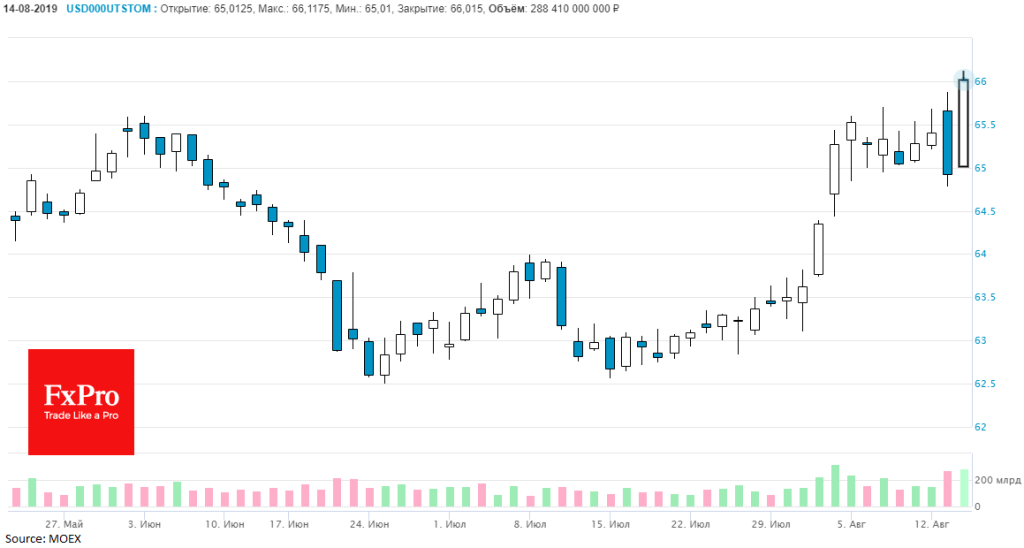К концу сессии в среду, USDRUB поднялся выше 66.0, а EURRUB – выше 73.55, с лихвой вернув завоеванные накануне позиции. Несмотря на то, что китайская и американская стороны продолжают сигнализировать о готовности к переговорам, рынки уже слабо верят в прогресс. Так что всплеск оптимизма оказался весьма кратковременным.