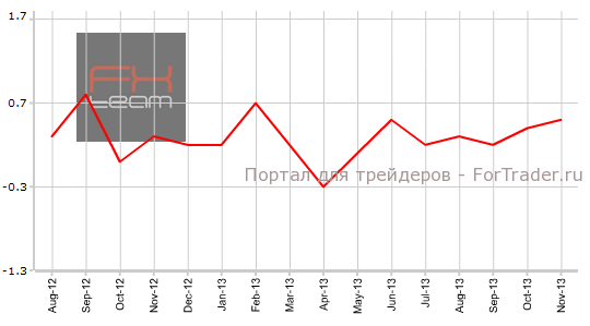 В ноябре 2013 года личные расходы в США выросли с отметки 0,4% до уровня 0,5%, совпав с прогнозами экономистов. В декабре аналитики финансовых рынков ожидают сокращения личных расходов до отметки 0,2%.