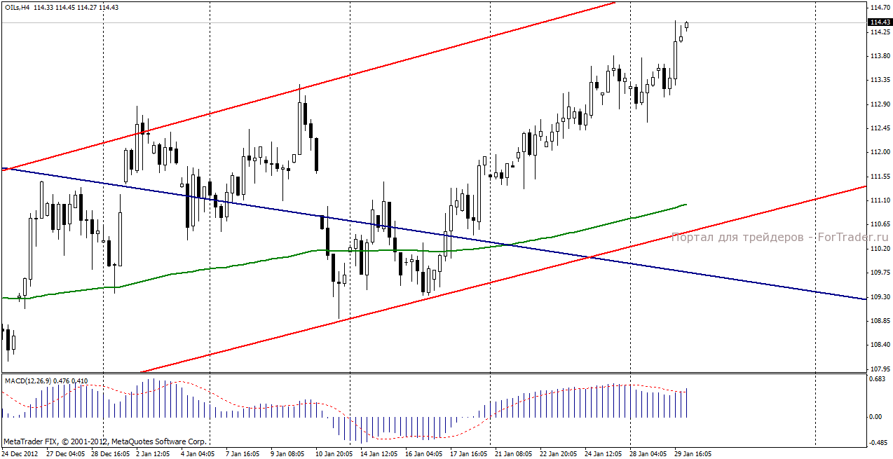 По мнению аналитиков журнала ForTrader, нефть Brent до публикации результатов заседания FOMC сохранит умеренно положительную динамику. Продолжающийся кризис в Египте также окажет локальную поддержку нефтяным котировкам. Напомним, в Египте продолжаются беспорядки, начавшиеся 24 января, в канун второй годовщины свержения режима Хосни Мубарака. Число погибших превысило 50 человек и продолжает увеличиваться. Главком ВС Египта заявил, что беспорядки угрожают Египту развалом страны. Массовые акции протеста продолжаются и протестующие угрожают перекрыть Суэцкий канал, который является одним из мировых ключевых морских путей для транспортировки нефти.